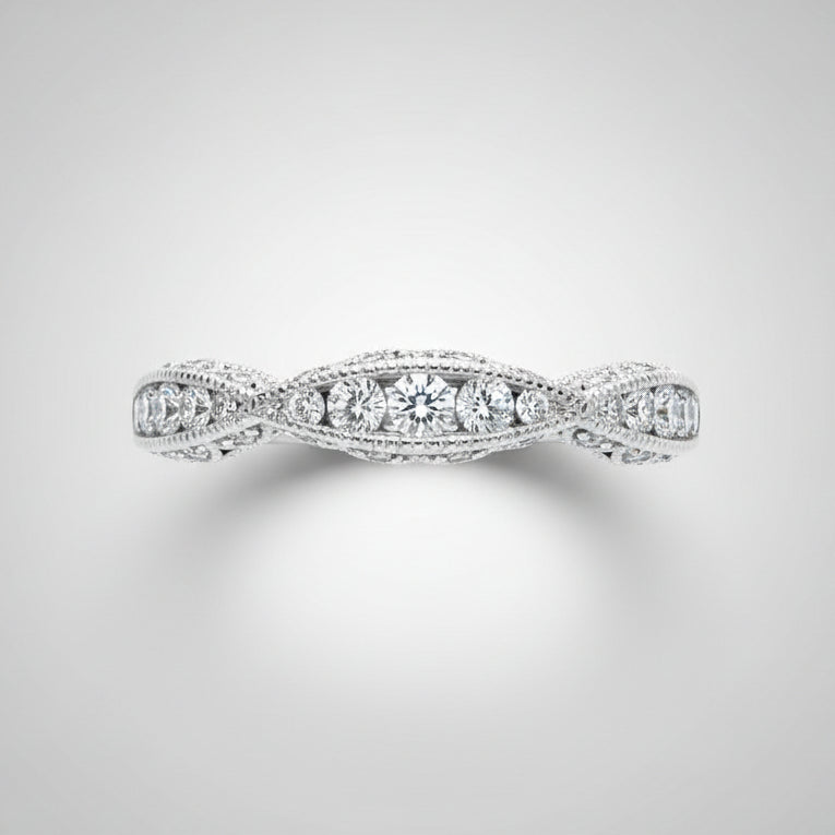 Crafted in premium 18K White Gold, this ring features a continuous, shimmering circle of .87TW diamonds designed to catch the light from every angle.